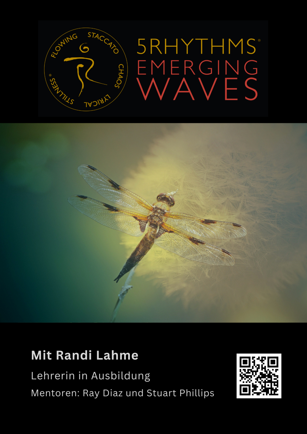 Emerging Waves eine 5Rhythmen® Klasse die von Randi Lahme auf einfache Art angeleitet wird. Ihre Mentoren Ray Diaz und Stuart Phillips begleiten sie dabei.